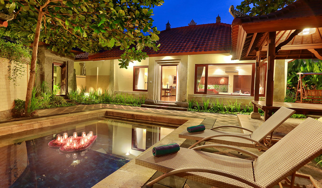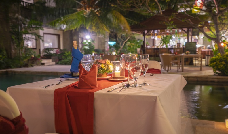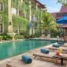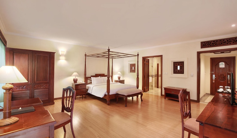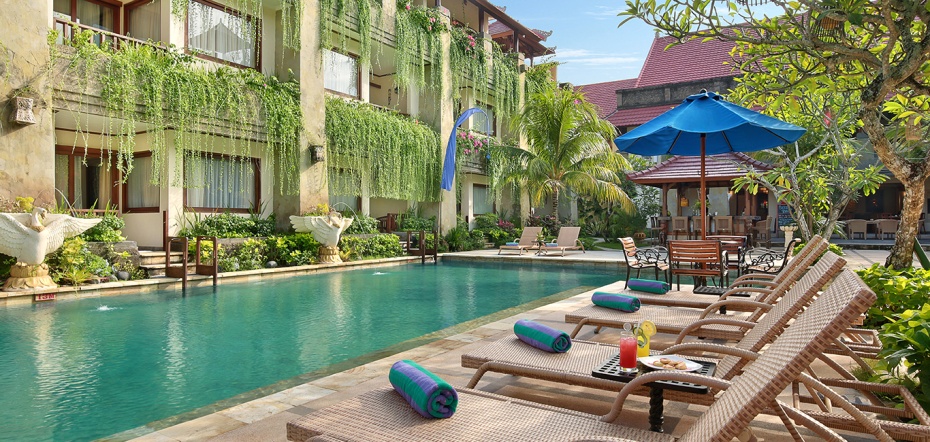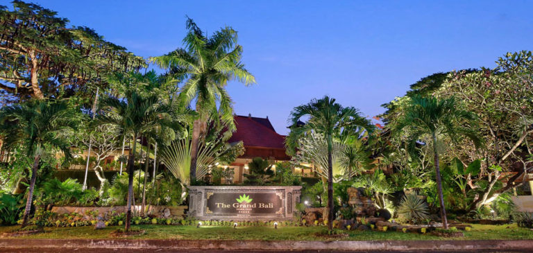 The Grand Bali расположен на курорте Нуса Дуа, неподалеку от отеля расположены многочисленные кафе и рестораны. У отеля есть собственный пляжный клуб, трансфер до него предоставляется бесплатно. На территории отеля открытый бассейн, спа-центр, тренажёрный зал, конференц-залы, ресторан и 3 бара.