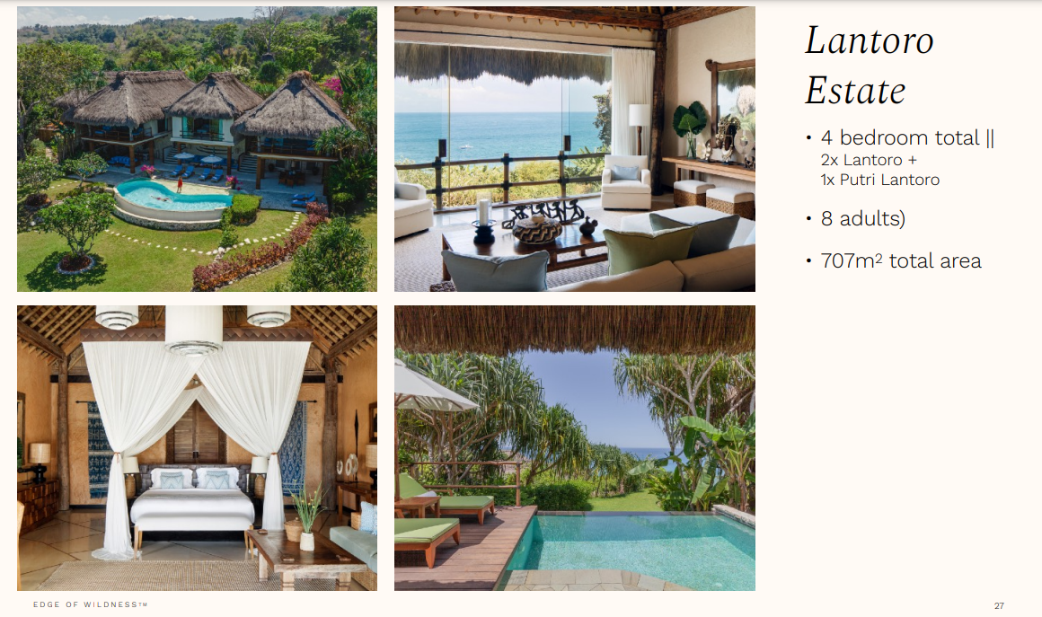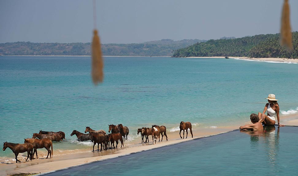 Nihi Sumba — это эксклюзивный роскошный курорт, расположенный на удаленном острове Сумба в Индонезии, примерно в часе полета от Бали. Он является настоящим оазисом дикой природы, непревзойденного комфорта и уникального баланса между природой, культурой и роскошью. Курорт состоит из 27 вилл с 38 номерами от одной до пяти спален, каждая с собственным бассейном. Виллы выполнены в стиле традиционной индонезийской архитектуры, каждая из которых имеет уникальный дизайн.