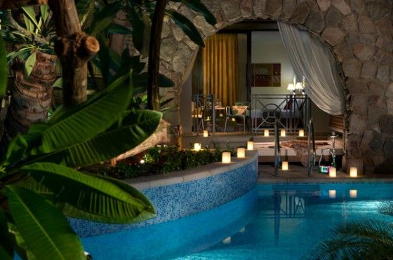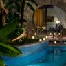 бассейн с фонтанами и водными каналами, огибающими номера постояльцев на первом этаже (с подогревом в зимний период) сауна влажная и сухая (платно) спорт-зал (платно)