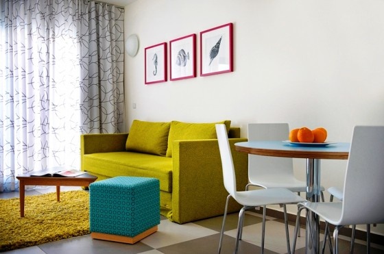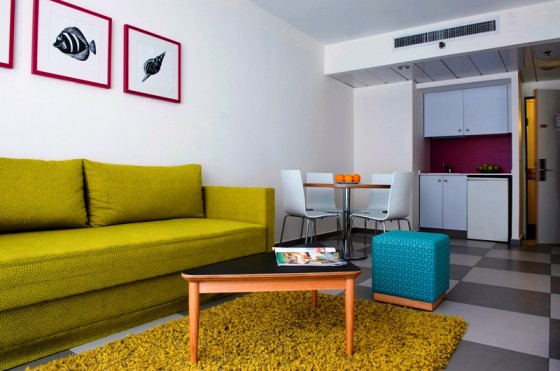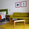 127 просторных номеров suite и 66 больших номеров studio: •Studio — однокомнатный номер; •Suite — двухкомнатный номер, состоящий из гостиной с кухонным уголком и спальной комнаты.