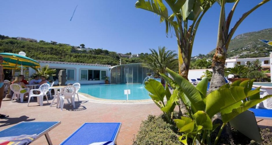 Отель расположен на юго-востоке острова Искья в местечке Панса, в тихом районе между виноградниками и бухтой Сорджето. На территории отеля есть частная дорожка, которая позволяет добраться за 20 минут до знаменитой рыбацкой деревни Сант-Анджело. Отель находится в км от города Форио и в 10 км от порта Искья. Расстояние до ближайших терм «Тропикал» — 2 км.