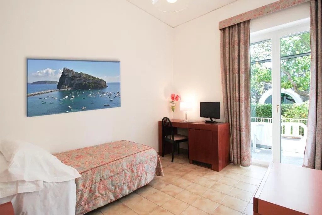 Отель расположен в тихом месте посреди соснового бора в городе Искья Порто, в 1 км от порта и рядом с историческим центром и оживленными улицами с магазинами, кинотеатрами и ресторанами. Международный аэропорт Неаполя находится в 32 км.