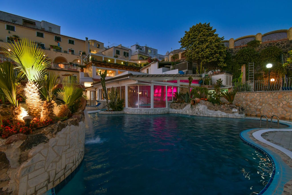 Отель Saint Raphael Terme находится на утесе в городе Искья Барано, в 10 минутах езды от центра города. В 5 км расположен паромный порт, соединяющий остров с Неаполем. Расстояние до международного аэропорта составляет 36 км.