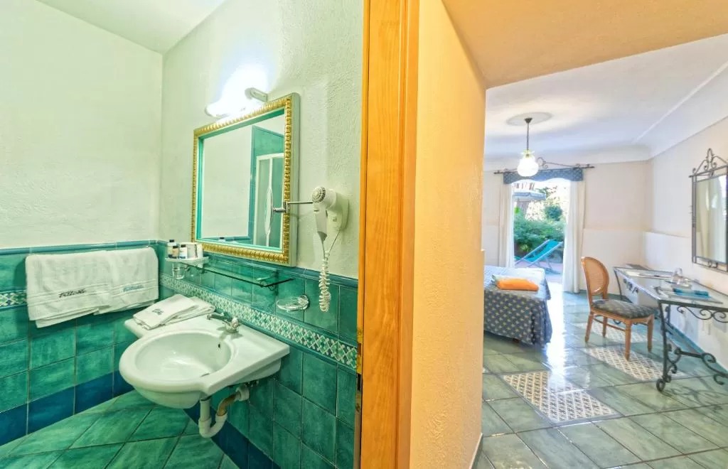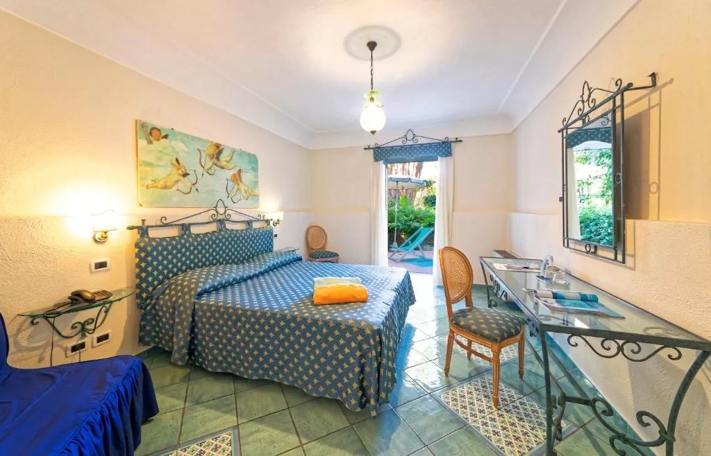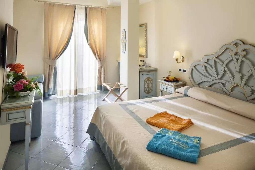 Отель Tritone Terme расположен на берегу моря на острове Искья, в бухте Сан Франческо. Прямо у отеля находится собственный песчаный пляж. Отель находится рядом с историческим центром города Форио с башней Торрионе и храмом Дель Соккорсо. К услугам гостей сад, ресторан, крытые и открытые бассейны, фитнес-зал, оздоровительный спа-центр с хамамом и гидромассажной ванной. Во всех номерах есть балкон.