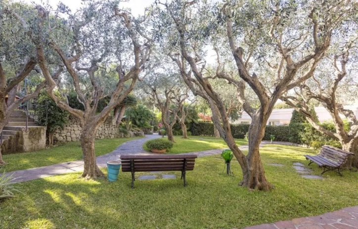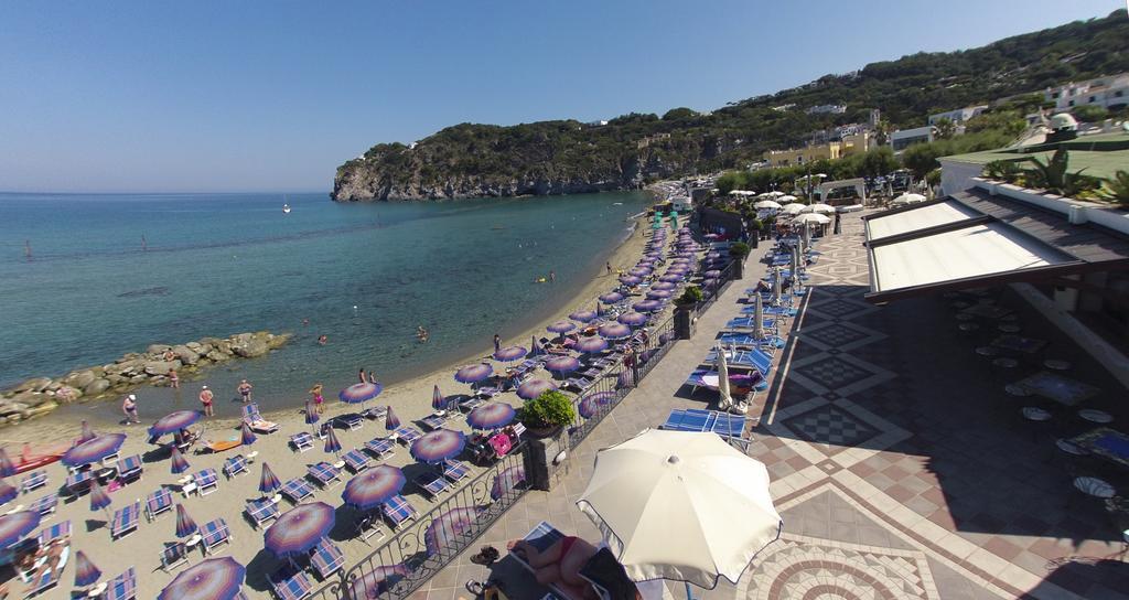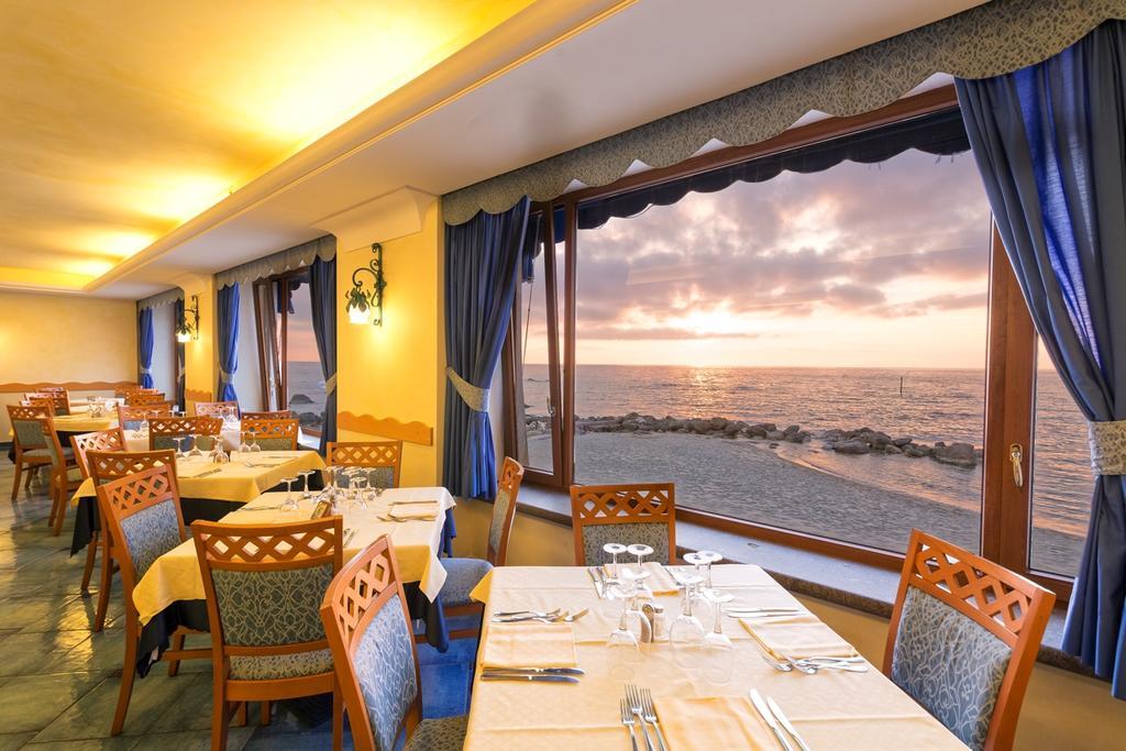 Отель расположен в 1,5 км от центра города Форио, на берегу моря в бухте Сан Франческо. Остановка автобуса, на котором можно быстро доехать до термального парка «Сады Посейдона» и залива Читара — в 150 м. Гавань Казамиччола, откуда отправляются паромы на материковую часть Италии, находится в 4 км от отеля Tritone Terme. Международный аэропорт Неаполя — в 51 км.