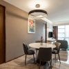 Сьют–апартаменты с 2-мя спальнями на 36-45 этажах: каждая с двуспальной кроватью и собственной ванной комнатой с душем (ванная комната главной спальни с душем и ванной), отдельная гостиная, обеденная зона со столом на 4 персоны и мини-кухня: холодильник, СВЧ-печь, плита, раковина, шкафы для хранения, стиральная и сушильная машины, вид на город; план номера 1 вар., план номера 2 вар., план номера 3 вар;