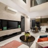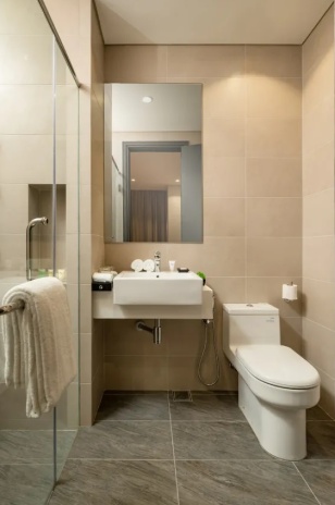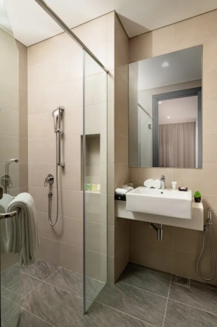 В 48-этажном здании представлены современные сьюты с видом на город, полностью оборудованными кухнями, стиральными машинами и дополнительными спальнями, что делает отель удобным для семей с детьми и длительного проживания.