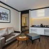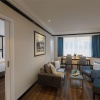 Двухкомнатный сьют на 13–17 этажах: спальня с двуспальной кроватью king–size, ванная комната с ванной и душевой кабиной, отдельная гостиная с зоной отдыха, кухонным уголком и обеденной зоной со столом на 4 человек, вид на город, привилегии* для гостей.