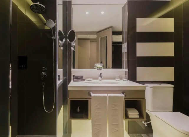 В современном 18-этажном здании гостей ждут стильные и комфортабельные номера и сьюты с видом на город, включая просторные семейные варианты с двумя спальнями.