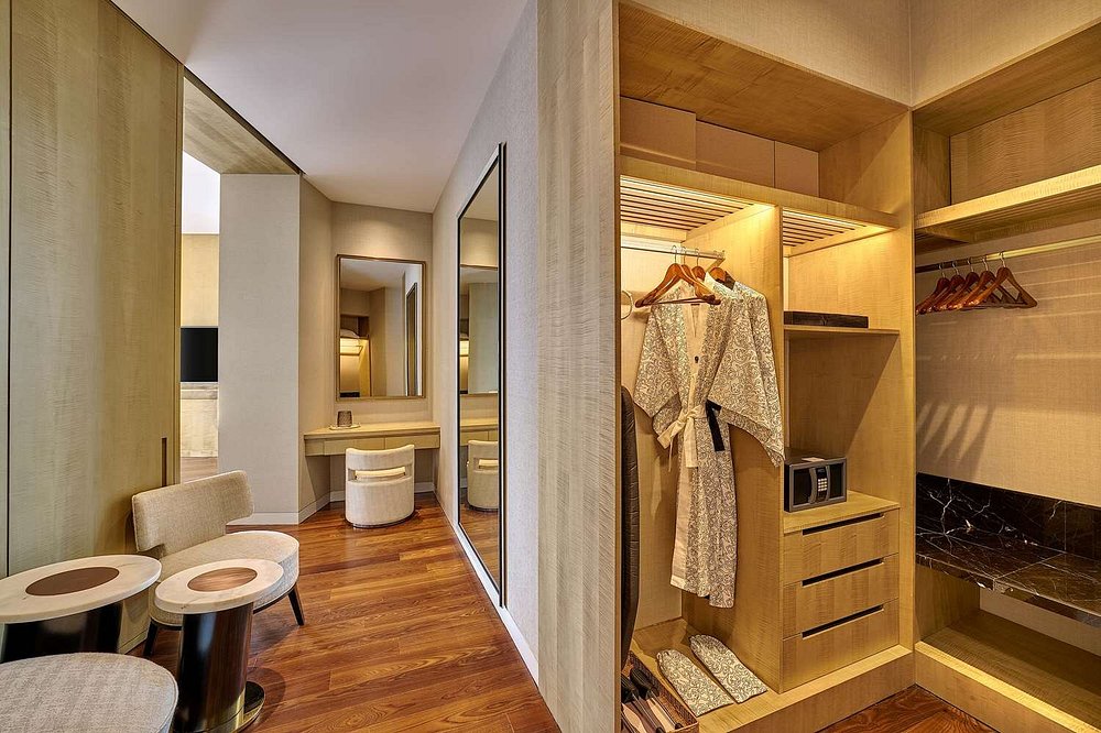 В номерах: Wi-Fi, звукоизоляция, окна от пола до потолка, кондиционер, HD LCD телевизор со спутниковыми каналами, рабочий стол, диван/ кресло, шкаф, халат, тапочки, банные принадлежности, гигиенический душ/ биде, фен, зеркало для макияжа, телефон, сейф, мини-бар (платно), ежедневная бутилированная питьевая вода, электрочайник, капсульная кофемашина, принадлежности для чая/кофе, утюг и гладильная доска, аромалампа (эфирное масло меняется ежедневно).