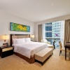 Номер с двуспальной кроватью king-size или 2-мя односпальными кроватями, журнальный столик, кресло, письменный стол; ванная комната с тропическим душем и отдельным туалетом; вид на город; план номера king-size; план номера twin;