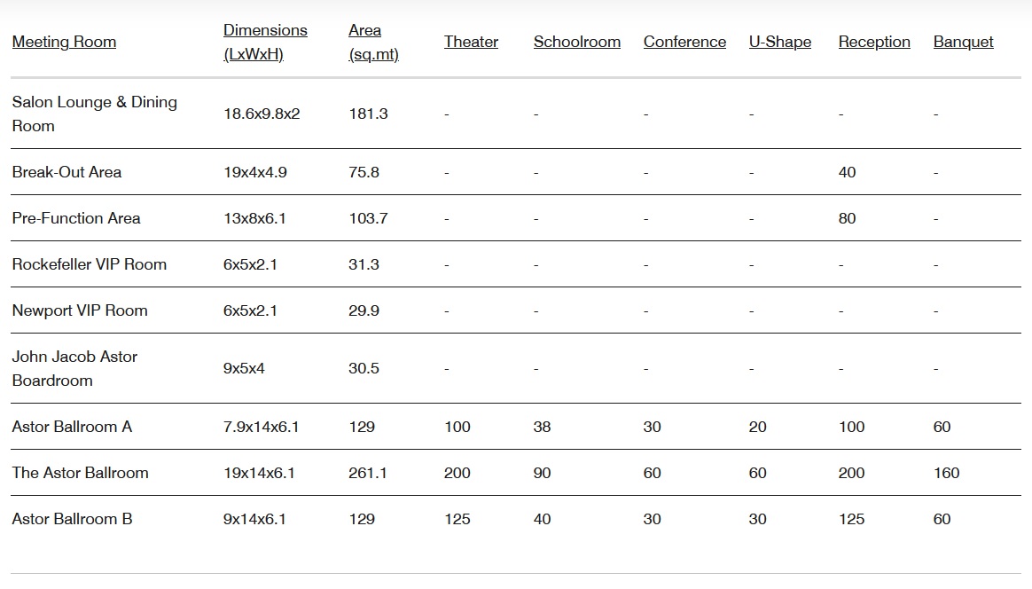 В номерах: Wi-Fi, кондиционер, письменный стол, LED-телевизоры с кабельными каналами (премиум каналы CNN и HBO), телефон, сейф, халат, тапочки, пуховые одеяла, банно-косметические принадлежности (Remede), косметическое зеркало с увеличением, фен, ежедневная бесплатная бутилированная питьевая вода, кофемашина, электрочайник, принадлежности для чая/кофе, мини-бар (платно), утюг и гладильная доска, услуги дворецкого.