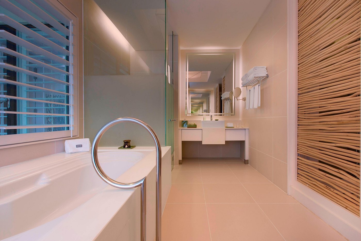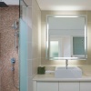 * В номерах ванная комната отделена стеной с окном (матовым или с рольшторой).