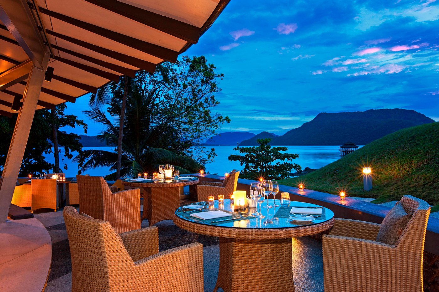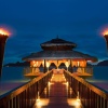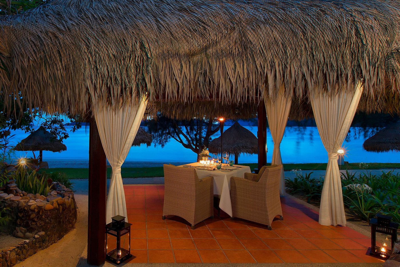 Двухэтажная вилла с 5-ю спальнями: три спальни - с двуспальной кроватью, две - с двумя односпальными кроватями, 5 собственных ванных комнат с ванной и душем, 2 гостиные, отдельная столовая с обеденным столом на 10 персон, мини-кухня (СВЧ-печь, кофеварка, чайник), зона для массажа, меблированная терраса (зонты, шезлонги), беседка, вид на океан и на пирс.