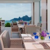 Сьют c 1-й двуспальной кроватью, раздвижные стеклянные двери в ванную комнату с ванной и душевой кабиной, отдельная гостиная с обеденной зоной, большой меблированный балкон, фронтальный вид на море;
