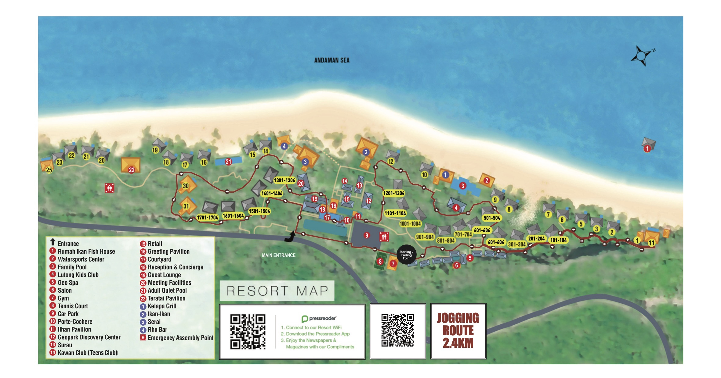 В отеле 92 номера (68 номеров и 24 виллы):