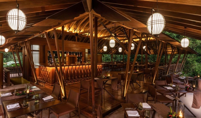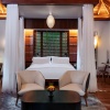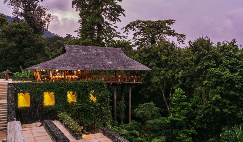 Уединенные виллы** на сваях в тропическом лесу, открытая планировка: двуспальная кровать king-size или 2 односпальные кровати, письменный стол, туалетный столик, гостиная зона с диваном, просторная ванная комната с душевой кабиной, ванной, двойной раковиной и гардеробной зоной, пополняемый мини-бар (за исключением снэков и алкогольных напитков), меблированный балкон, вид на тропический лес; план виллы;