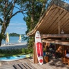 Вилла с 2-мя спальнями с на берегу: с двуспальной кроватью и 2-мя односпальными кроватями, 2 ваннные комнаты (обе с ванной и душем), гардеробные, отдельная гостиная-столовая с высокими деревянными потолками, окнами от пола до потолка, диваном, обеденным столом, подсобное помещение/ кухня для дворецкого, меблированная терраса, открытая обеденная зона на 8 персон, частный бассейн (10 м²), сад, выход к пляжу, привилегии для проживающих в номере*, план виллы.
