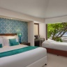 2 спальни (2 смежных номера Beach Villa): двуспальная кровать и 2 односпальные кровати, ванная комната с душем на открытом воздухе, терраса, кресла-мешки для отдыха;