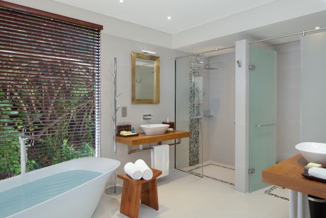 Обновлённые виллы, расположены на пляже, двуспальная кровать, ванная комната с джакузи и душем на открытом воздухе, 2 шезлонга для принятия солнечных ванн;