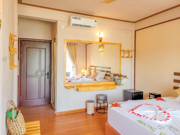 Amazing View Guest House – традиционный гэстхаус на Мальдивах, расположенный на острове Тодду, известном своими богатыми урожаями фруктов и овощей. Отель состоит из одноэтажных домиков-бунгало. Пляж находится в 10 минутах ходьбы от отеля. Также в пешей доступности – магазины и кафе.