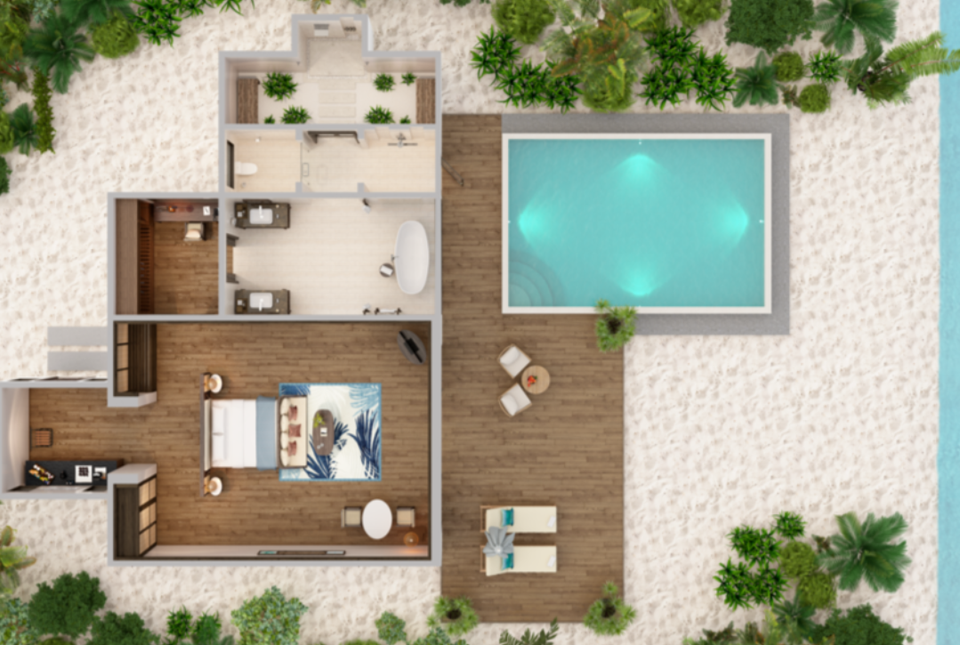 На каждой вилле: Wi-Fi, телевизор со спутниковыми каналами, DVD, мини-бар, кондиционер, сейф, набор для приготовления чая/кофе, телефон, фен, утюг, халат и тапочки, рабочий стол, аюрведическими косметические принадлежности, вентилятор, док-станция для iPod, шкаф или гардероб, Blu-ray плеер, коврик для йоги и набор для занятия фитнесом, кофемашина Nespresso, заземляющий коврикй для наиболее спокойного сна, меню подушек.