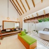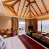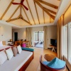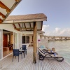 Водные виллы, спальня с двуспальной кроватью king-size, возможна одна дополнительная односпальная кровать, отдельная гостиная комната, ванная комната с ванной и душем, меблированная терраса с надводной сеткой-гамаком и прямым спуском в океан, кофемашина, халат, тапочки, вид на океан или лагуну;