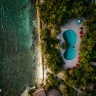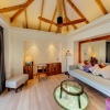 Двухэтажные береговые виллы, спальня с двуспальной кроватью king-size на втором этаже, гостиная на первом этаже; частично открытая ванная комната с душем на открытом воздухе, балкон, терраса, небольшой частный бассейн, кофемашина, халат, тапочки, вид на океан.