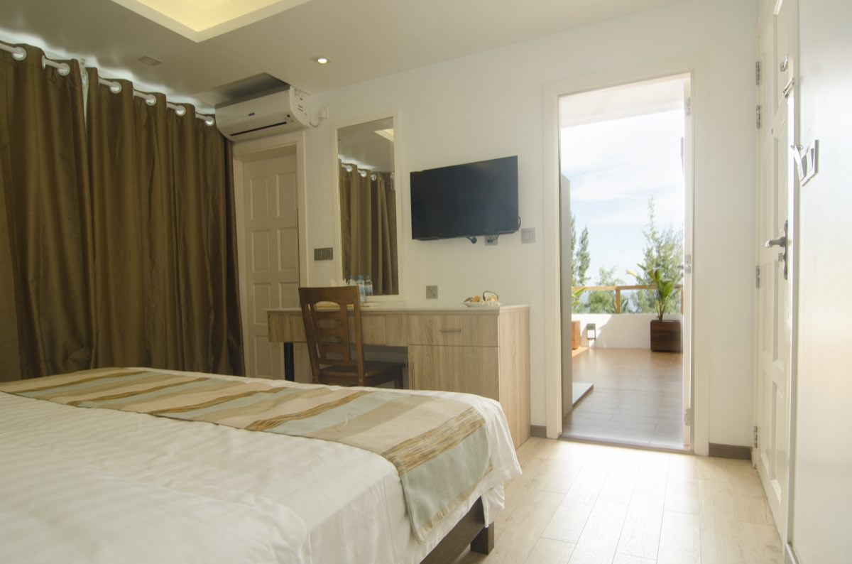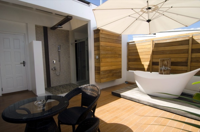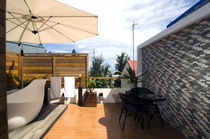• Sky Suite (35 кв.м).  Просторный номер с ванной на свежем воздухе, летним душем, просторной террасой, собственным балконом. Тип кровати – двуспальная.