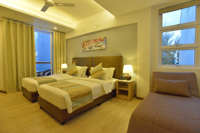 • Family Room (20 кв.м). Номер для размещения семей или друзей. Тип кровати – двуспальная кровать + одноместная доп.кровать или 3 односпальных кровати.
