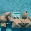 Вилла расположена на сваях над водой в конце пристани, 2 спальни: двуспальная кровать king-size, 2 односпальные кровати, 2 гардеробные, кабинет, отдельная гостиная комната с диваном, обеденной зоной и кухней, 2 ванные комнаты с ванной, 2 душа под открытым небом, дополнительная туалетная комната, терраса с бассейном, лежаками и беседкой, вид на океан, план номера;