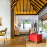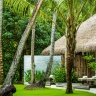 Номер расположен в тропическом саду с прямым выходом на пляж, 2 спальни с двуспальными кроватями king-size, 2 ванные комнаты с ванной и душем, душ под открытым небом, отдельная гостиная комната с диваном,  обеденным столом и кухней, кабинет, гостевая туалетная комната, терраса с лежаками и беседкой, частный бассейн на лужайке, услуги батлера, вид на океан, план номера;