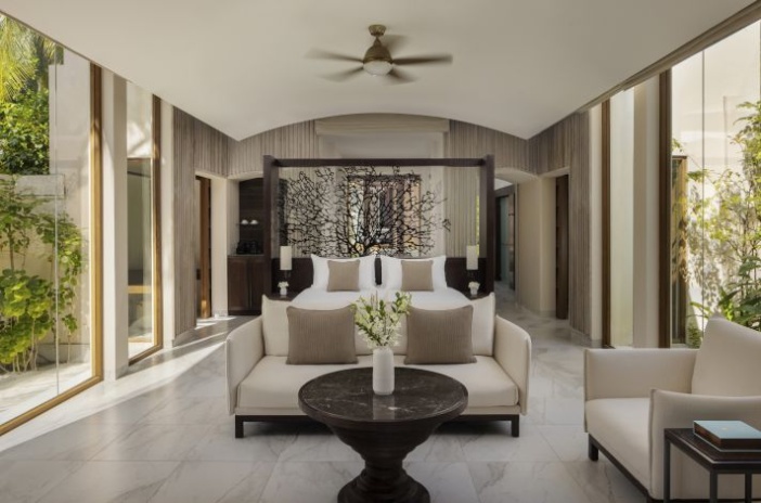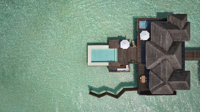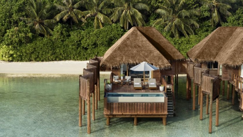 Виллы на острове Рангали-Финолу – архитектурный дизайн сочетает внутренние и внешние пространства, предлагая сады, частные бассейны и прямой выход к Индийскому океану.