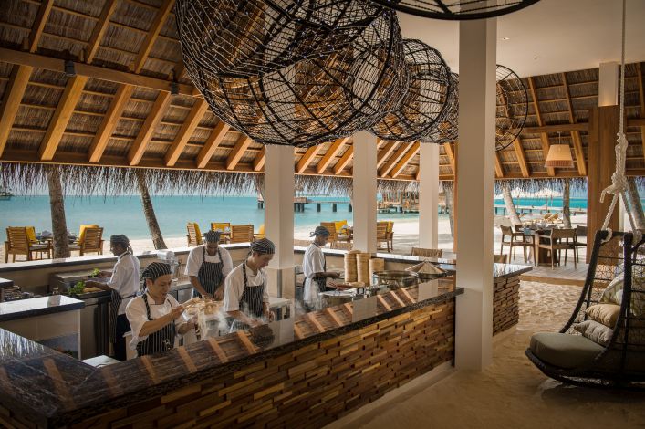 • ресторан Atoll Market представляет собой кулинарные станции с приготовлением блюд в режиме live cooking, завтраки и тематические ужины с кухнями мира (международная кухня, «шведский стол»). Завтрак: 07:00 10:30, ужин: 19:00 – 22:00 (Рангали-Финолу);