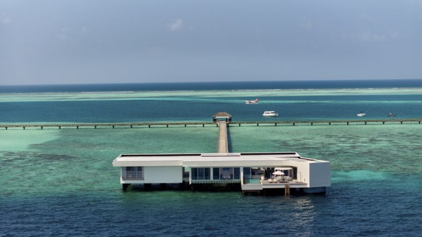 • Overwater Spa — спа над океаном на острове Рангали с процедурными кабинетами с прозрачным полом.