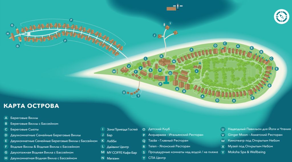 К услугам гостей – 4 ресторана и 1 кафе-бар, спа-центр и музей мальдивского наследия, инфраструктура для детей и подростков. Номерной фонд включает виллы на пляже и на воде, в том числе виллы с двумя спальнями для семейного размещения.