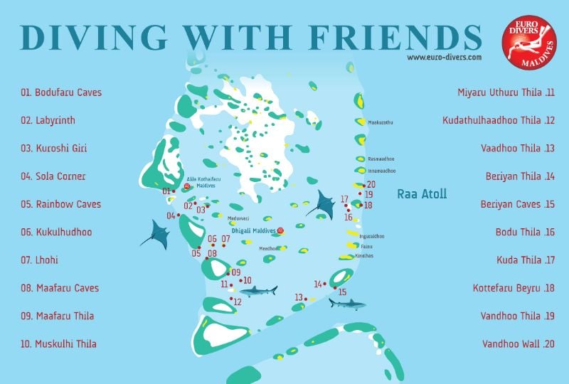 ∗ Центр дайвинга расположен в центральной части северной стороны острова, рядом с лагуной. Перед дайв-центром находится пирс, откуда начинаются дайвинг- и снорклинг-туры. Также возможны как самостоятельные, так и организованные погружения с домашнего рифа.