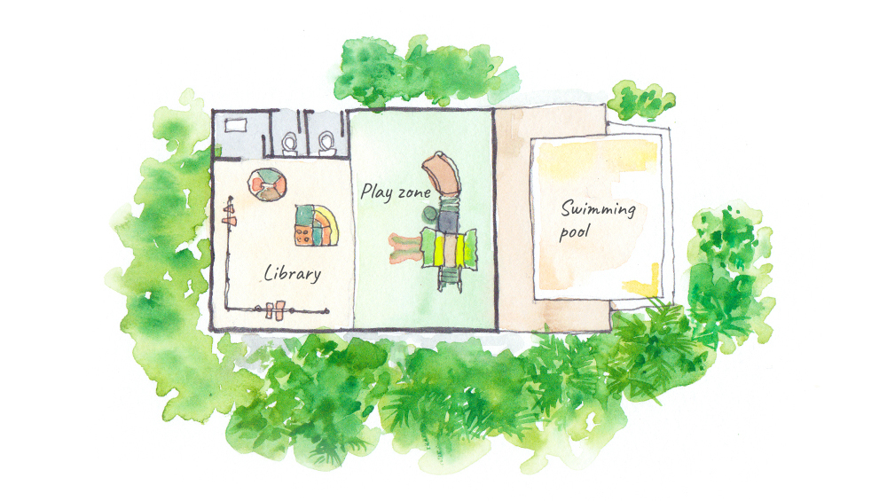 • детский бассейн в клубе (глубина 0,5 м, ширина 4 м и длина 5 м);