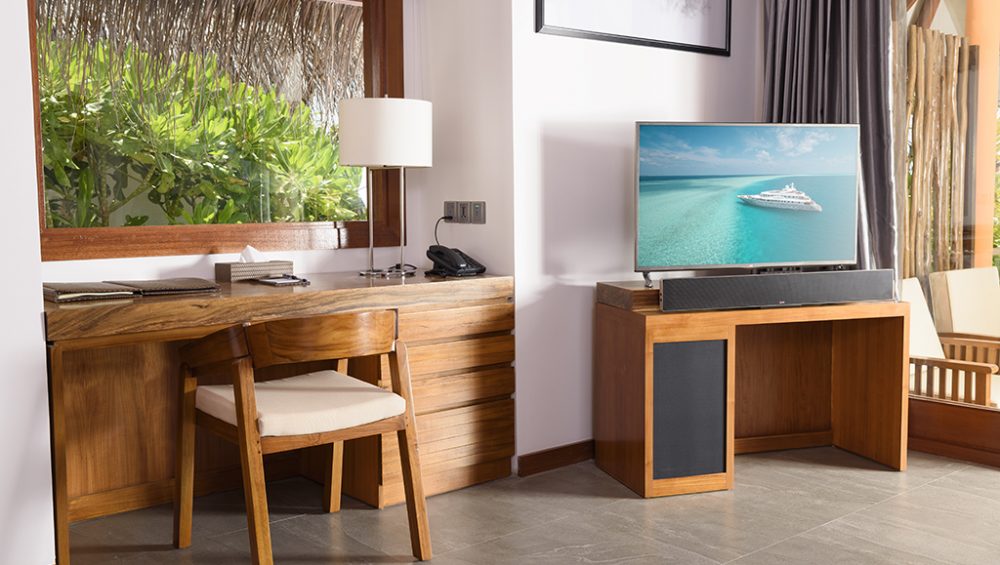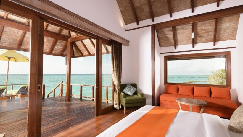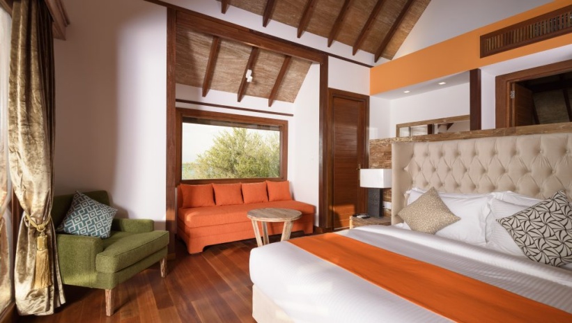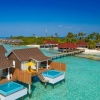 Виллы частично расположены над водой, двуспальная кровать king-size, диван-кушетка, ванная комната с ванной и душем, душ под открытым небом, меблированная терраса, спуск в воду с террасы, расположены в северной части острова, см.план номера. При размещении 2 взрослых + 2 ребенка может быть предоставлена одна дополнительная кровать и диван.