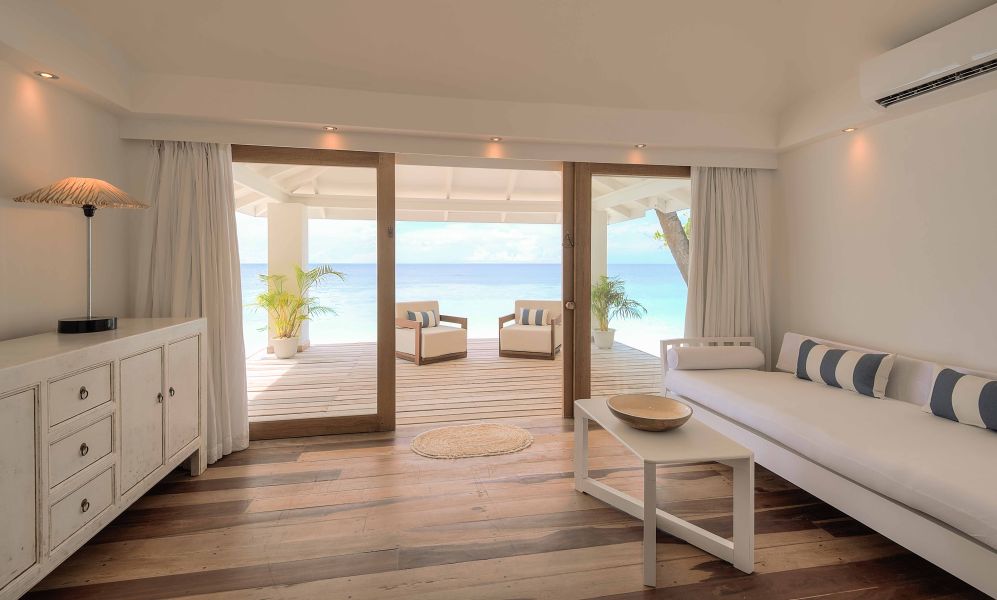Пляжные виллы, двуспальная кровать, ванная комната с 2 раковинами, душ на открытом воздухе, терраса, прямой выход на пляж;