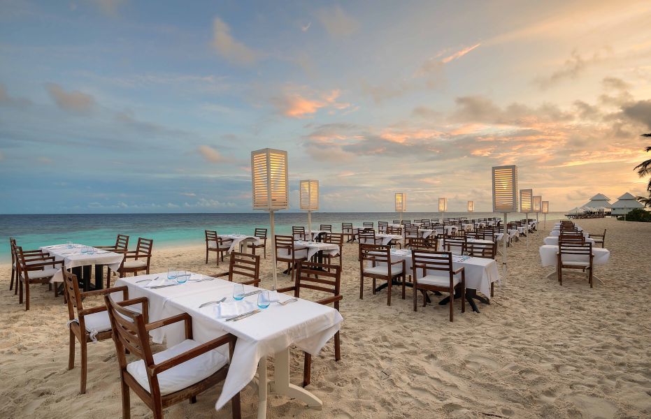 • ресторан мальдивской кухни в тропическом саду под звёздным небом и пальмами – Farivalhu. Традиционные блюда готовятся мальдивскими шеф-поварами при участии гостей, часы работы: 20:00 – 21:30. За дополнительную плату;