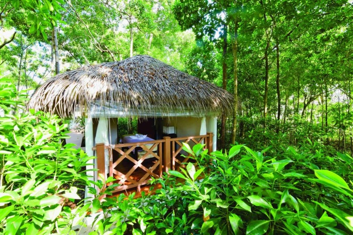 Береговые бунгало, двуспальная кровать, ванная комната с ванной и душем, душ на открытом воздухе, меблированная терраса, прямой выход на пляж, вид на океан, см.план номера;