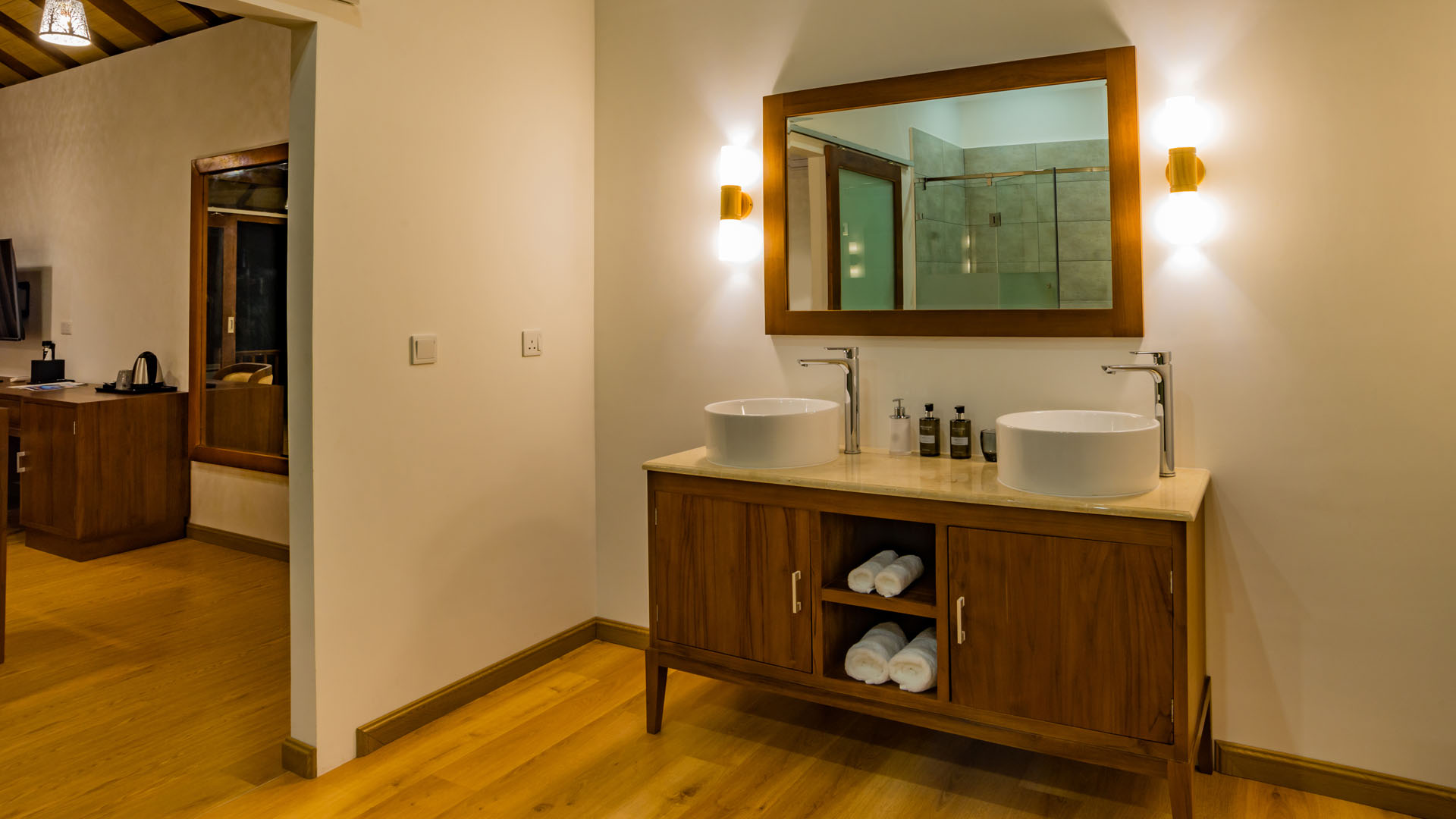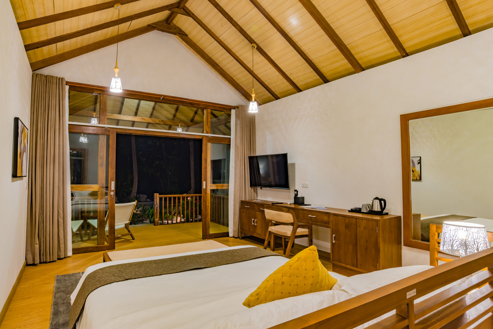 Отдельно стоящие бунгало, расположены в некотором удалении от береговой линии среди тропической растительности,  двуспальная кровать king-size (по запросу 1 дополнительная кровать), ванная комната с душем, терраса, патио;