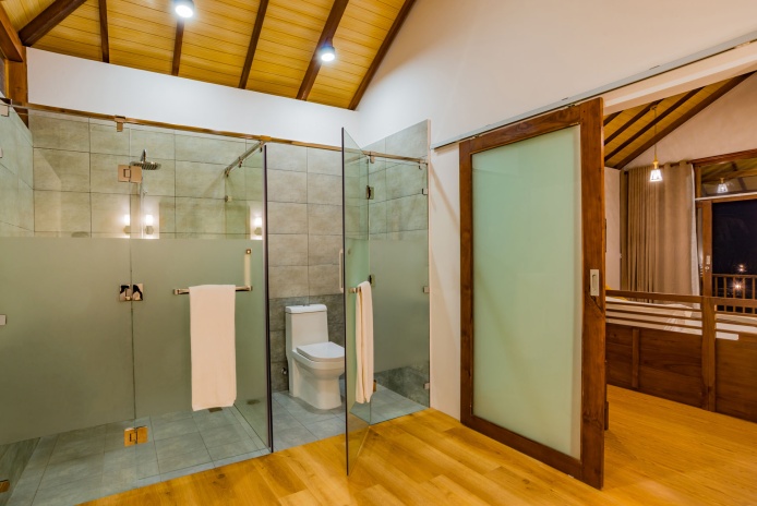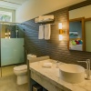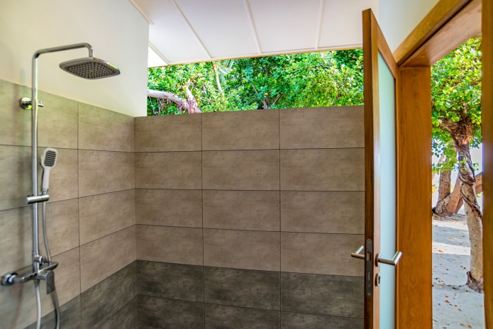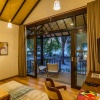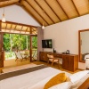 2 блока номеров, расположены в некотором удалении от береговой линии среди тропической растительности, двуспальная кровать king-size (2 односпальные кровати по запросу), гостиная зона с диваном-софа, ванная комната с душем, терраса, вид на сад, план номера;