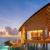 Водные виллы, расположены недалеко от рифа, двуспальная кровать «king-size», раскладная кровать для 3-го человека,  ванная комната с ванной и душем, душ под открытым небом, терраса с обеденной зоной и лежаками, частный бассейн, лестница, ведущая в океан, гамак у бассейна, вид на лагуну, план номера, виртуальный тур;