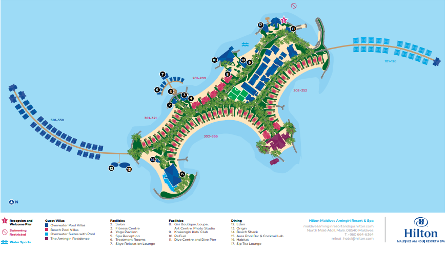 Новый отель Hilton Maldives Amingiri Resort & Spa 5* расположен на зелёном тропическом острове атолле Северный Мале, всего в 20 мин на катере от международного аэропорта.