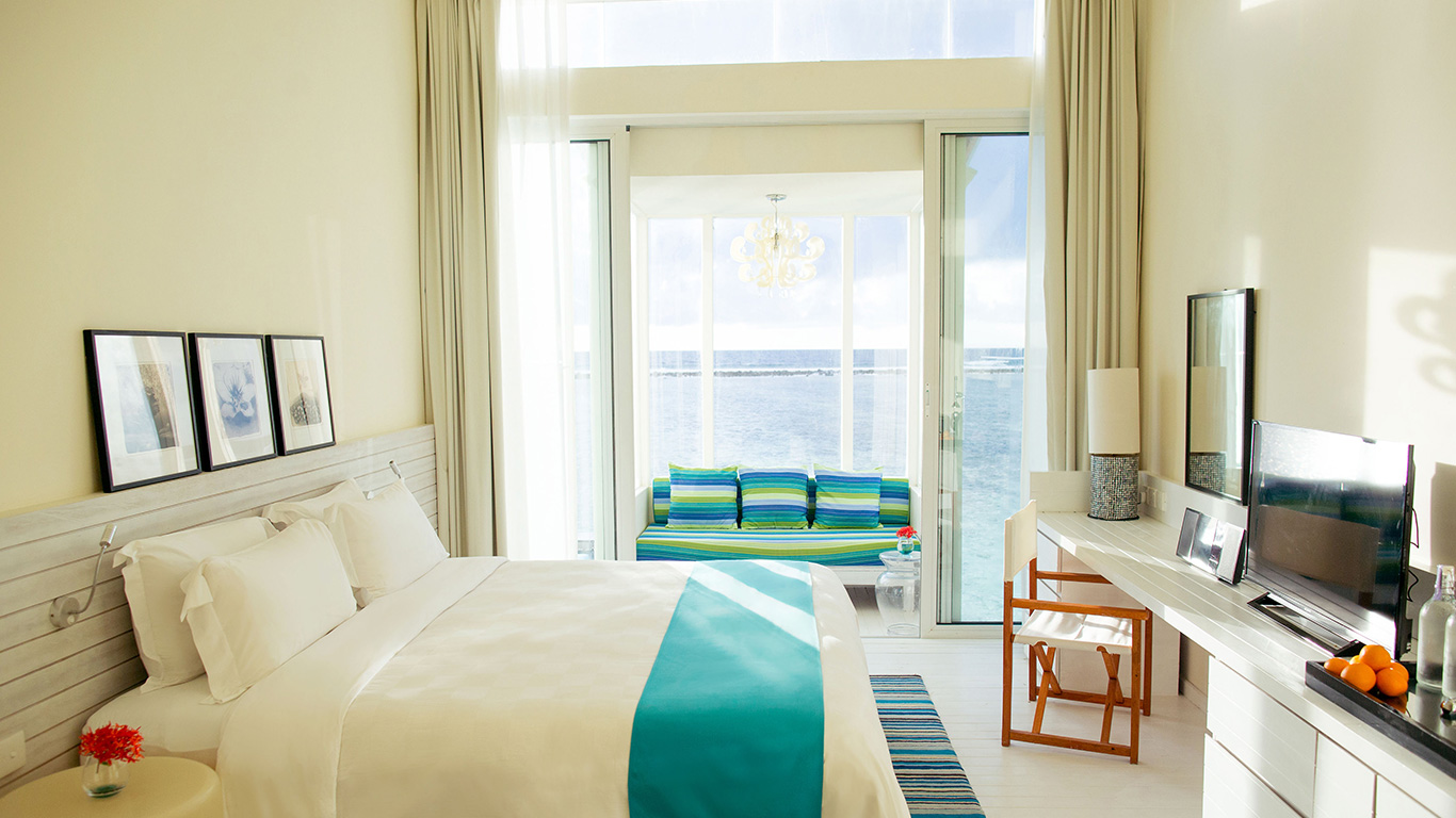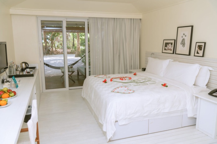 В номерах: халаты, тапочки, банные принадлежности, пляжные полотенца и сумка, сейф, меню подушек, телевизор со спутниковыми каналами, мини-бар, утюг и гладильная доска, питьевая вода Kandooma (ежедневное пополнение), набор для приготовления чая/кофе, Wi-Fi, кондиционер.