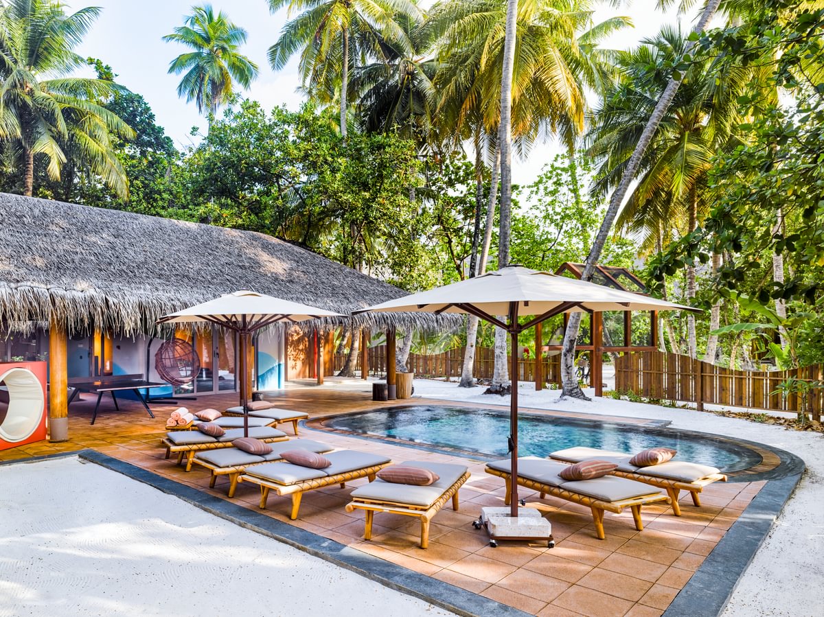 - 5 номеров Water Villa with Pool (общая площадь - 240 м², внутренняя площадь - 100 м², макс. 3 чел.).
