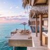 Расположены на сваях над водой, терраса с персональным бассейном 35 м² и лежаками, двуспальная кровать king-size или 2 односпальные кровати, отдельная рабочая зона с письменный столом, гардеробная, ванная комната с ванной, душ на открытом воздухе, прямой спуск в воду, услуги дворецкого, вид на океан, план номера;