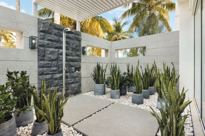 Береговая вилла с прямым выходом на пляж, спальня с двуспальной кроватью king-size, отдельная гостиная комната с диваном, гардеробная, ванная комната с ванной, душем, внутренним двориком и душем под открытым небом, гостевой туалет, терраса с частным бассейном размером 7х3,5х1,2 м, душ на террасе, меблированная терраса на крыше, вид на океан, см.план номера, план террасы на крыше;